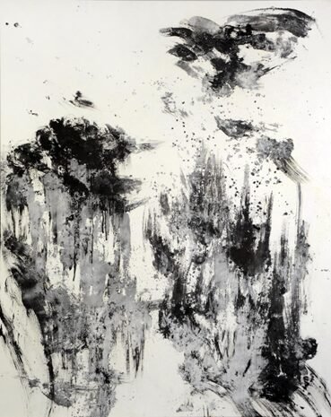 락, 2013, 한지에 먹, 밀가루, 162 cm x 130 cm