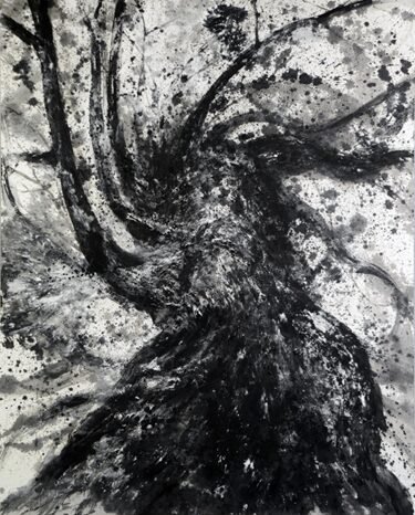 춤, 2013, 한지에 먹, 밀가루, 162 cm x 130 cm