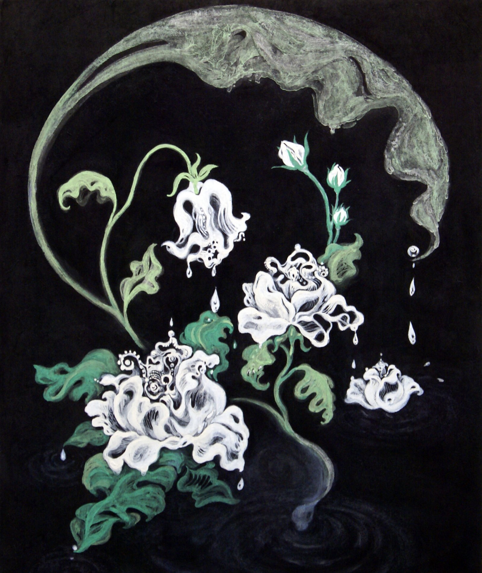 Flower blooming with tears, color on Hanji paper, 60 x 50 cm, 2015 -