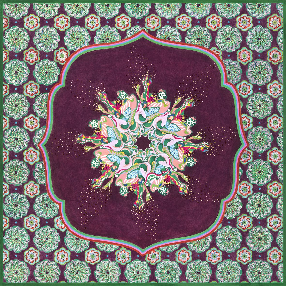 Mandala No.3 (emerald), digital print on silk, 100 x 100 cm, 2018 -
