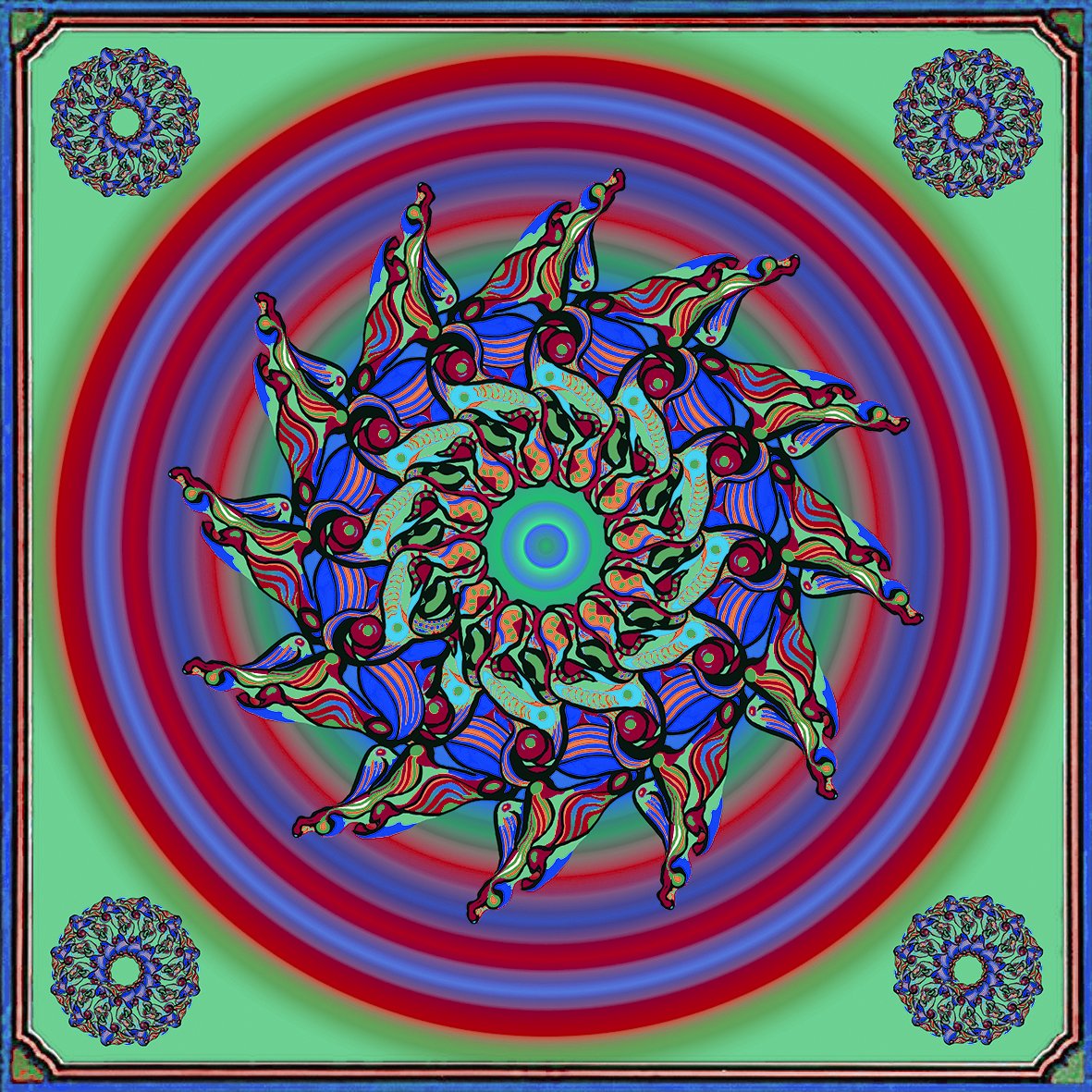 Mandala No.2 (mint), digital print on silk, 70 x 70cm, 2018 -