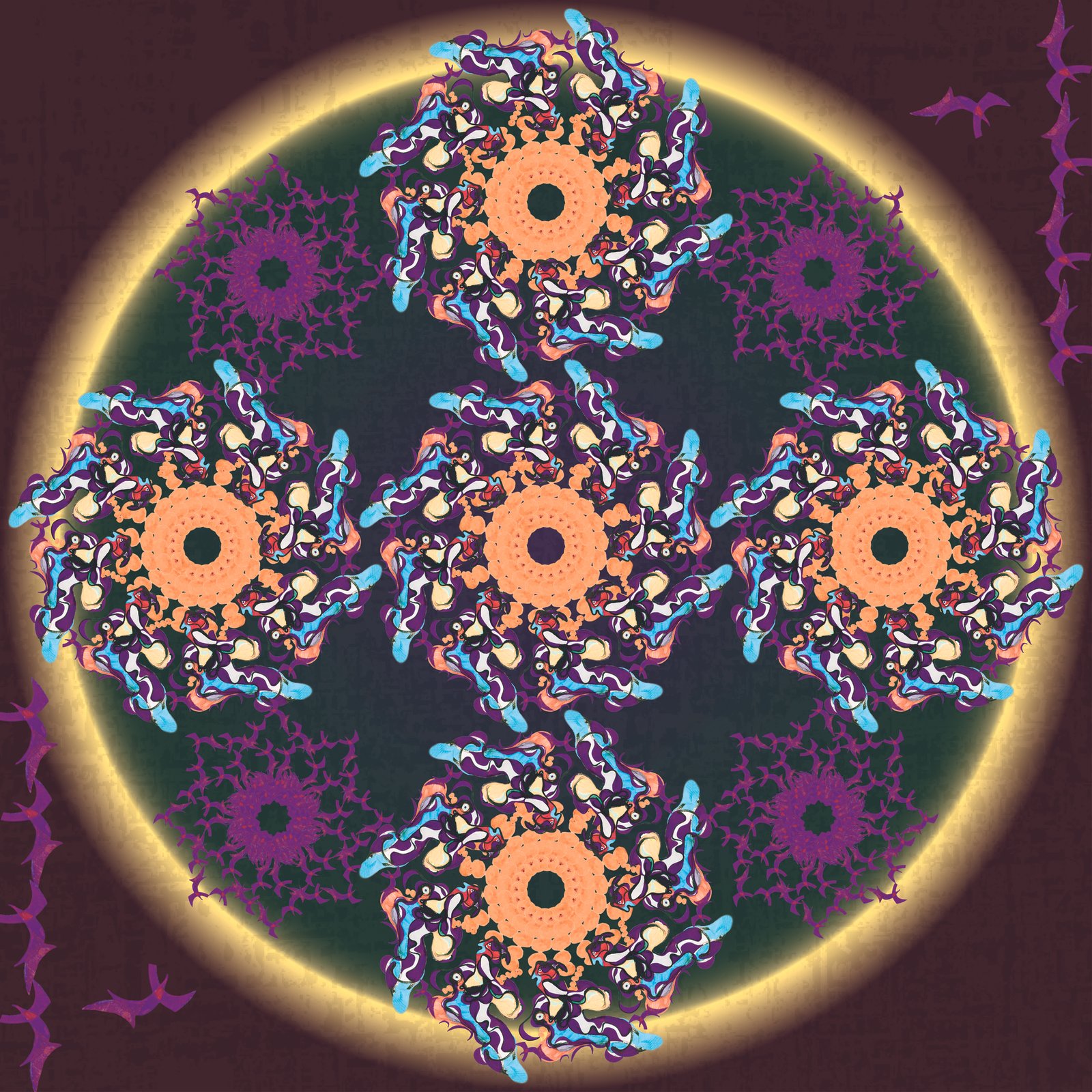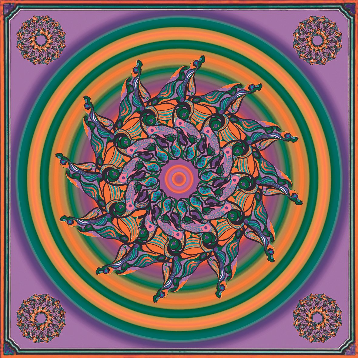 Mandala No.3 (orange), digital print on silk, 100 x 100 cm, 2018 -