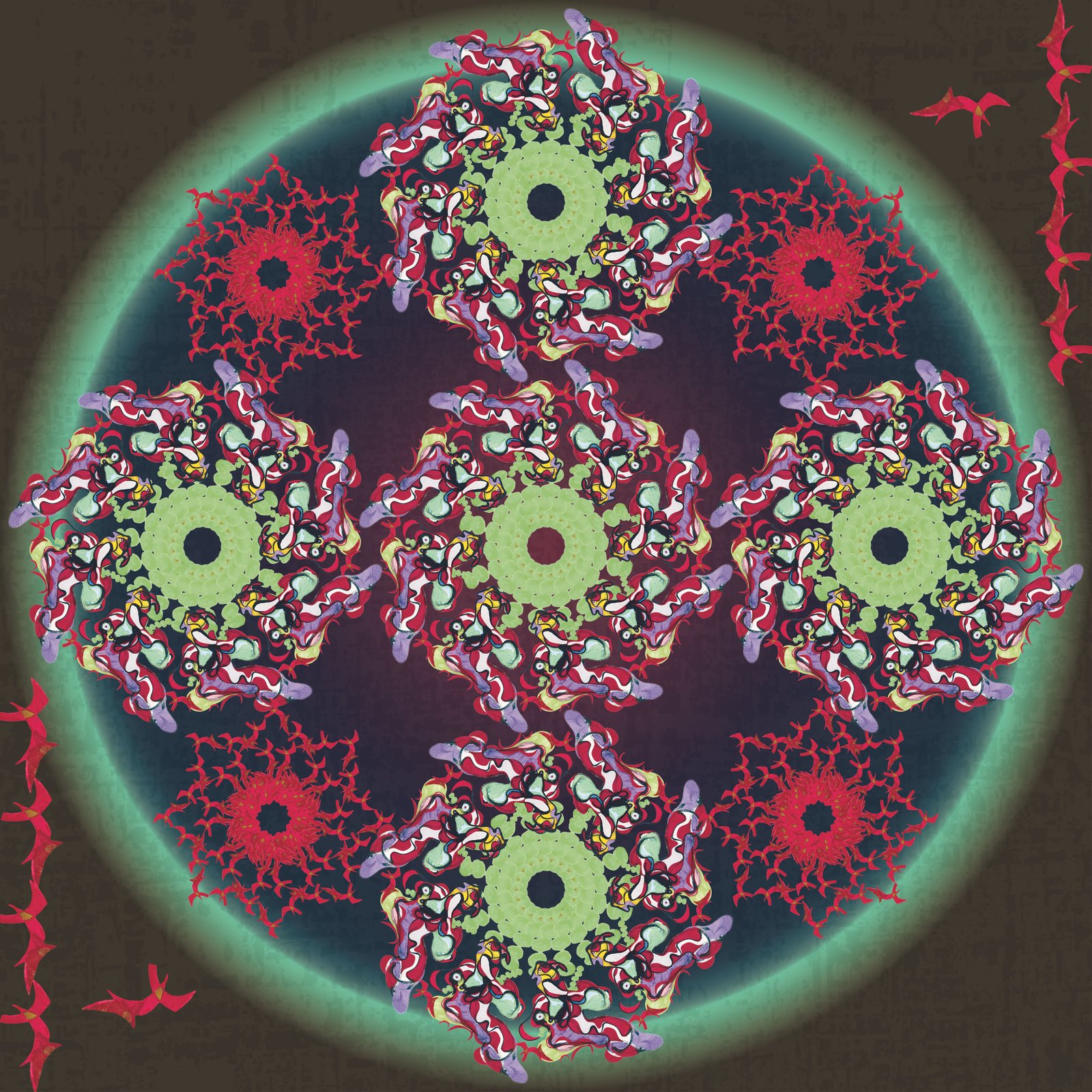 Moon Garden (red), digital print on silk, 100 x 100 cm, 2016