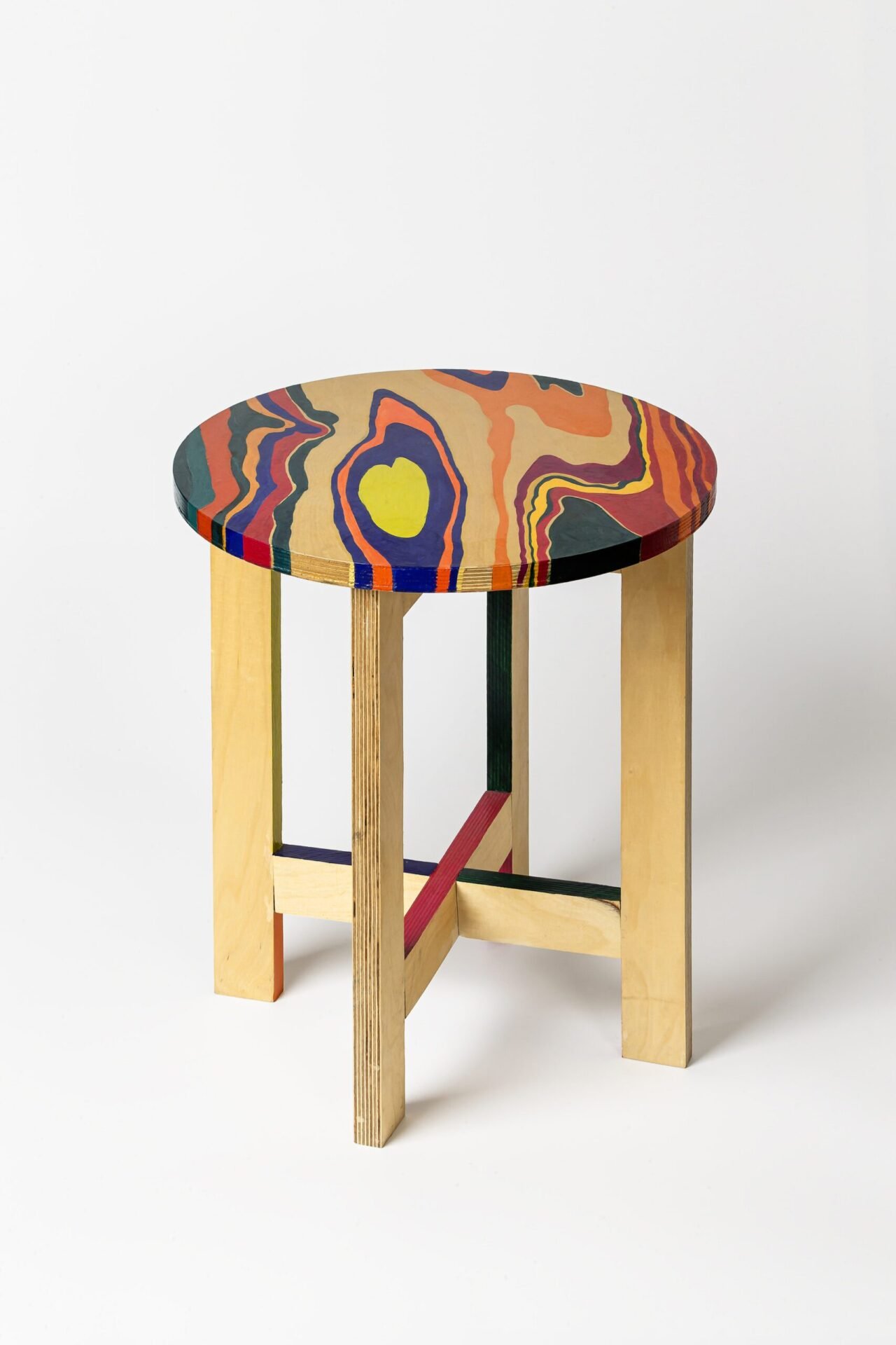 Weaving Color Stool No.1 oriental powder pigment on wood, H47 x W40 x D40 cm, 2019 -