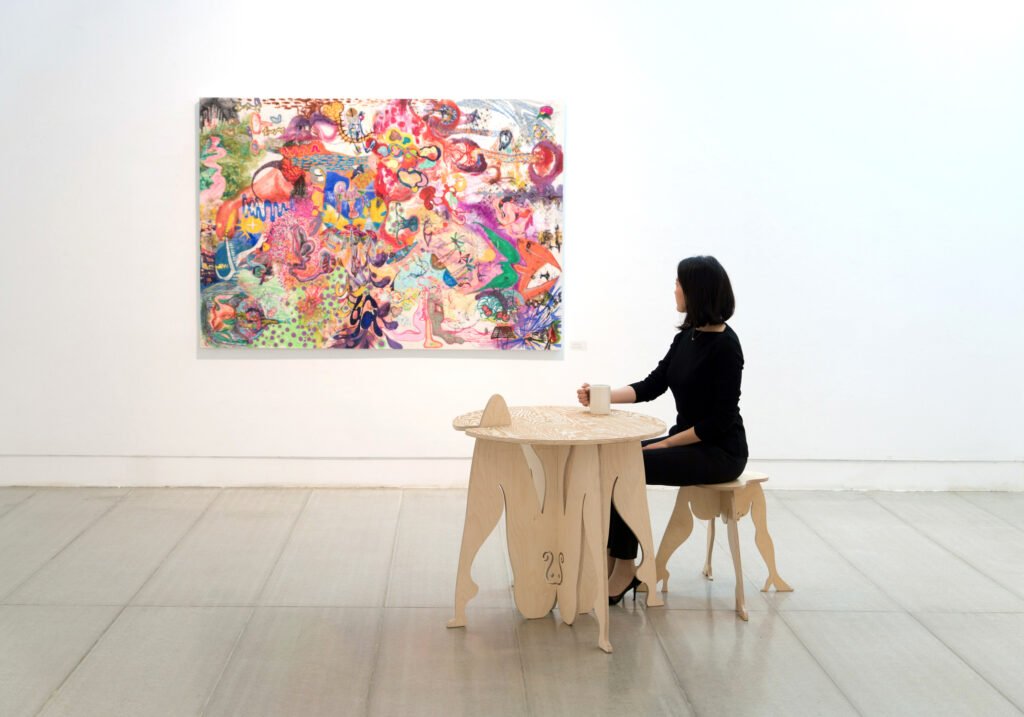 Body Table (S), oriental powder pigment on wood, H47 x W55 x D55 cm, 2019